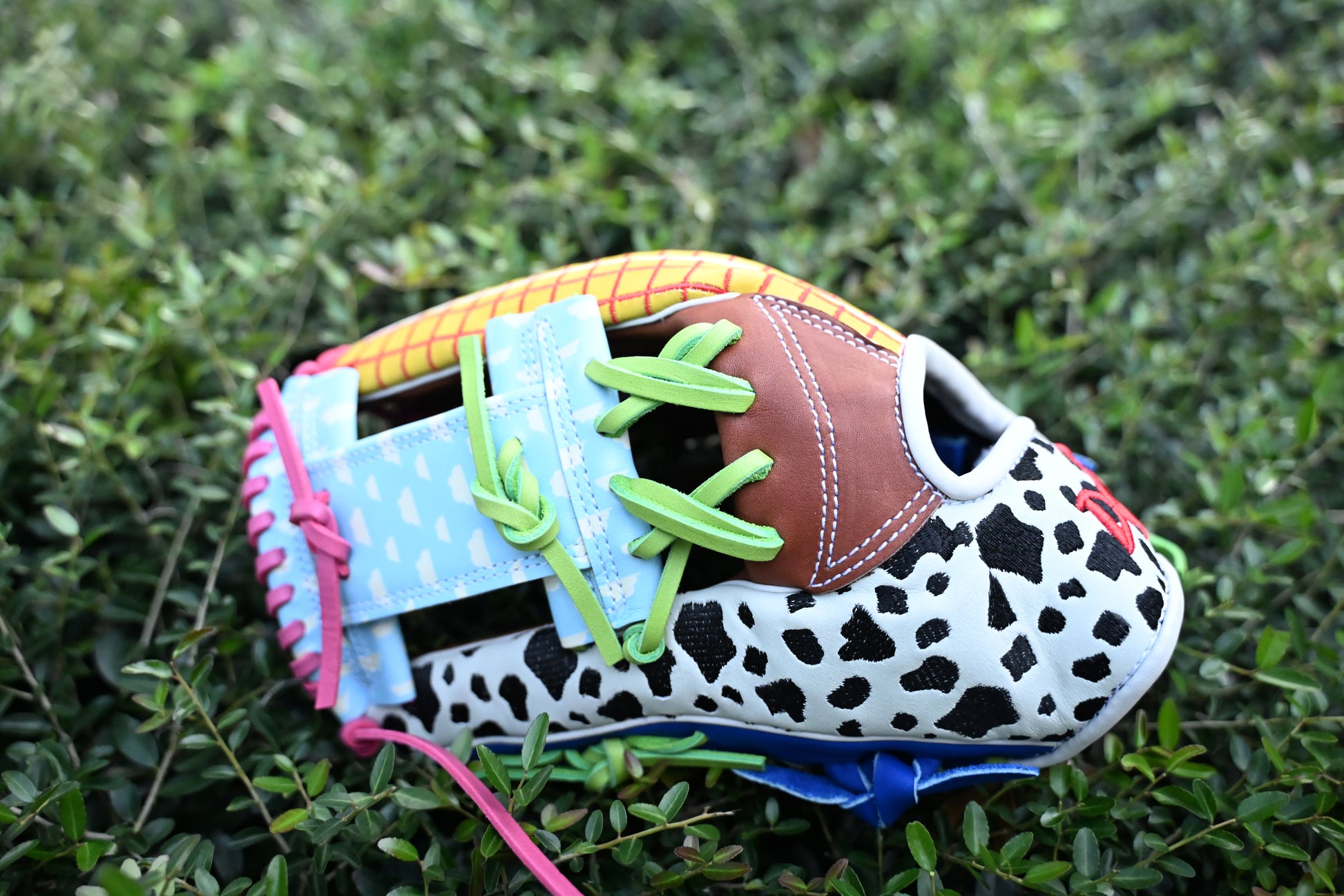 Bring your favorite childhood story to the diamond with this Toy Story Edition Custom Glove — a one-of-a-kind creation built to stand out. Every inch is fully custom: from the bold, colorful embroidery inspired by the Toy Story universe to the unique stitching details that make this glove unlike any other. Designed for players who want personality, nostalgia, and performance all in one, this glove is built to tell a story every time you take the field.